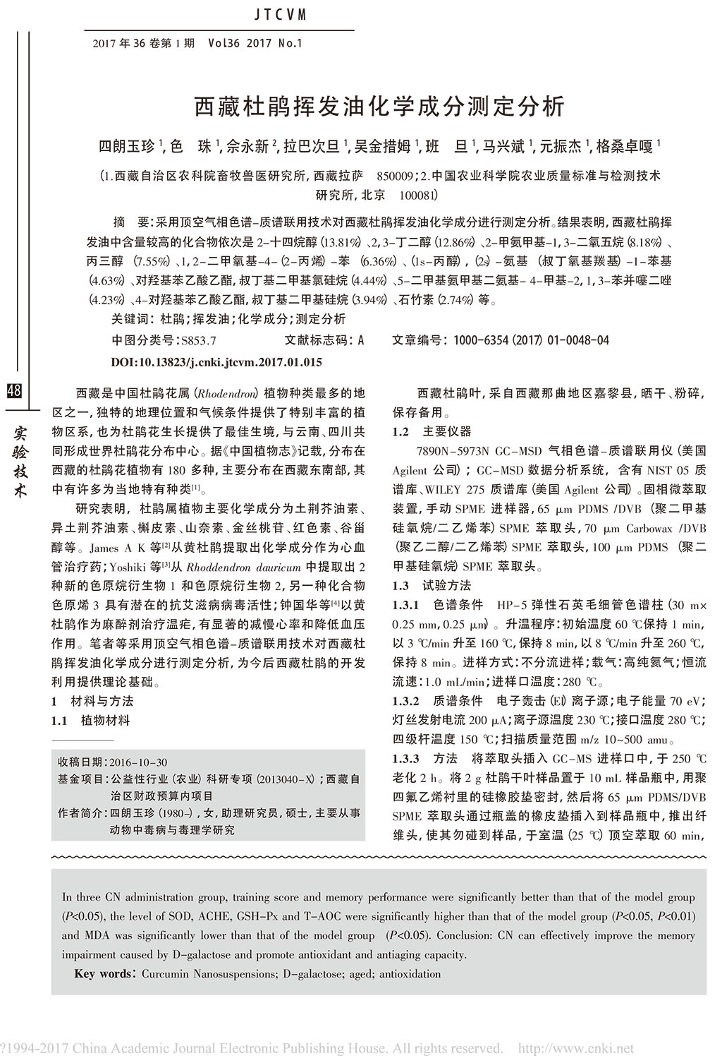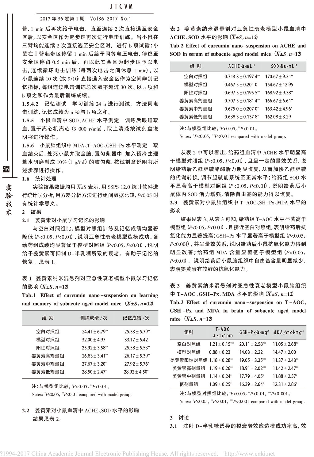 姜黃素納米混懸劑對(duì)亞急性衰老模型小鼠抗衰老指標(biāo)的影響_夏智