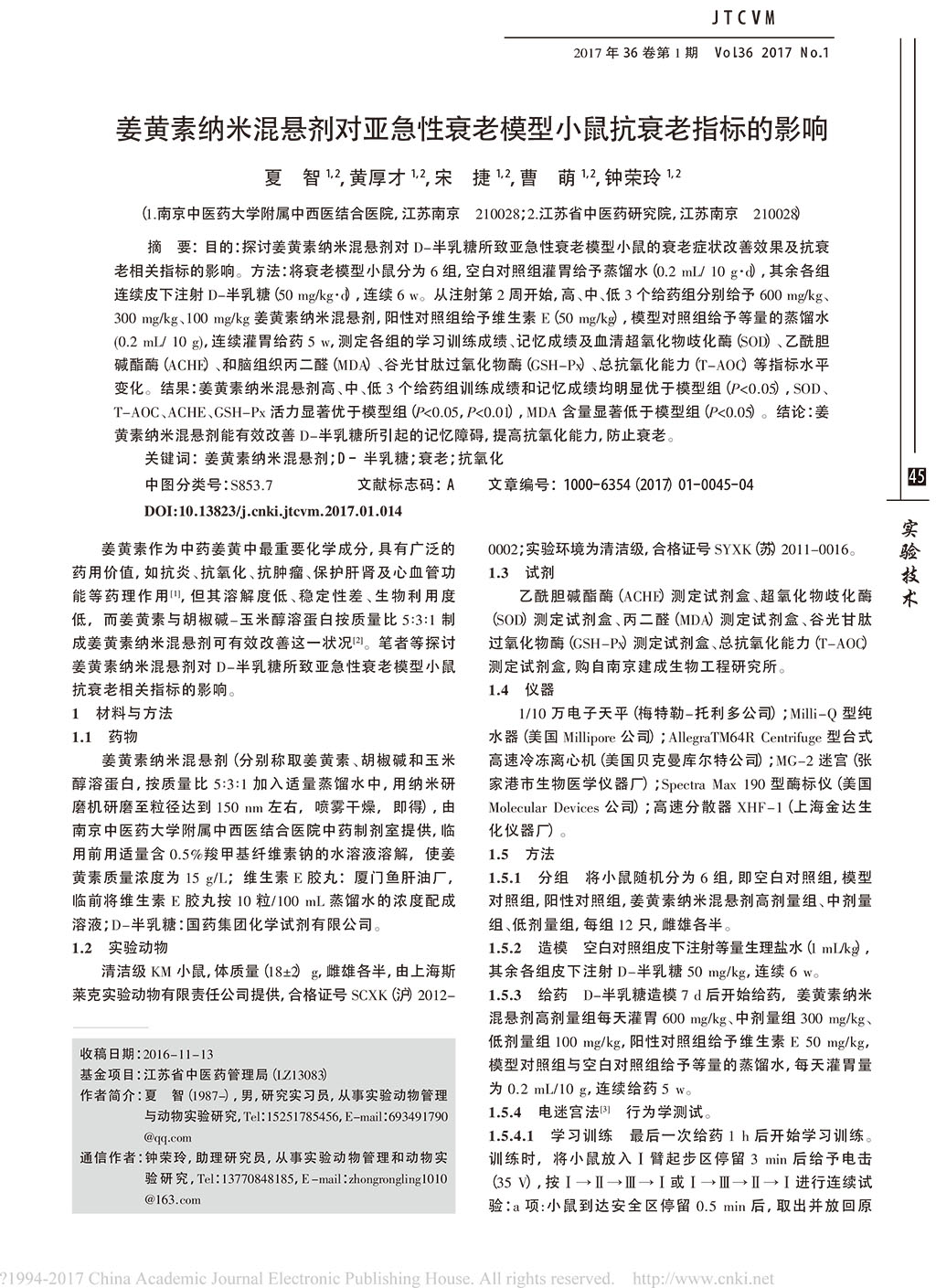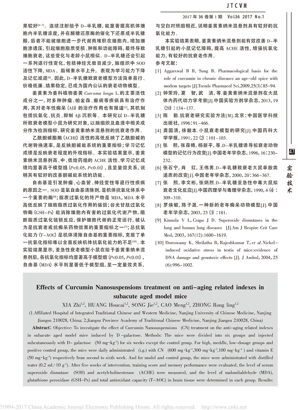 姜黃素納米混懸劑對(duì)亞急性衰老模型小鼠抗衰老指標(biāo)的影響_夏智