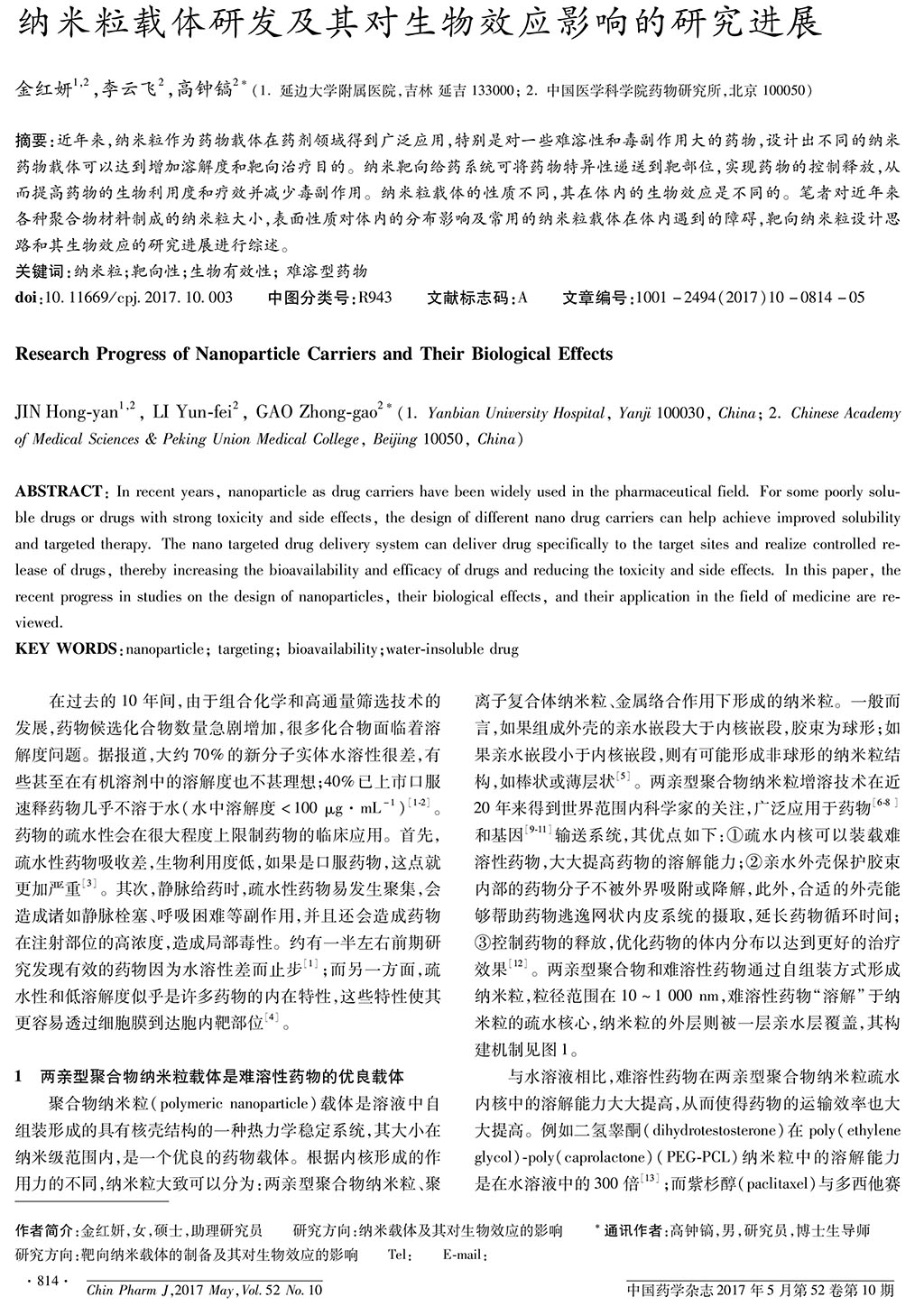納米粒載體研發(fā)及其對(duì)生物效應(yīng)影響的研究進(jìn)展